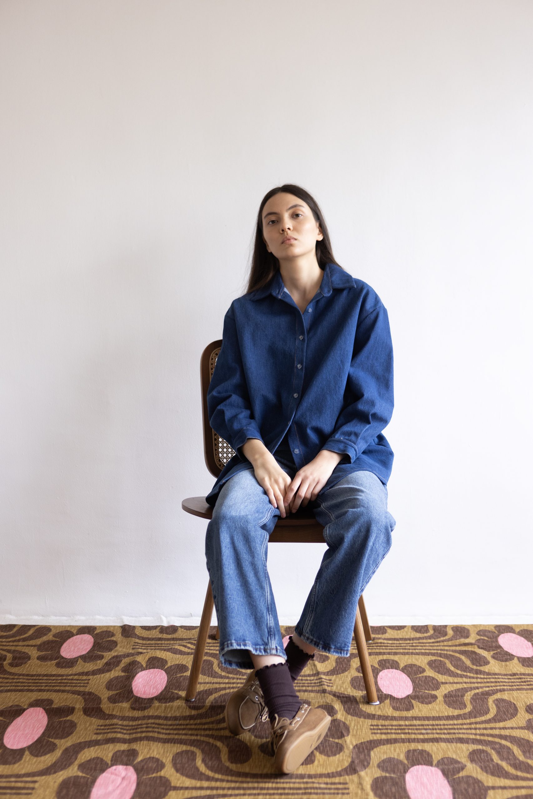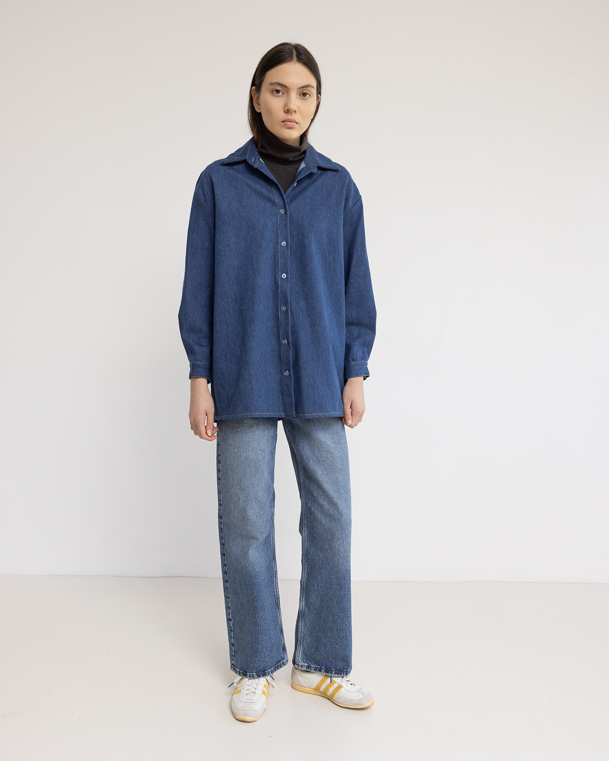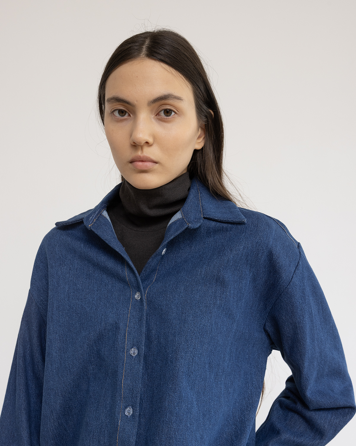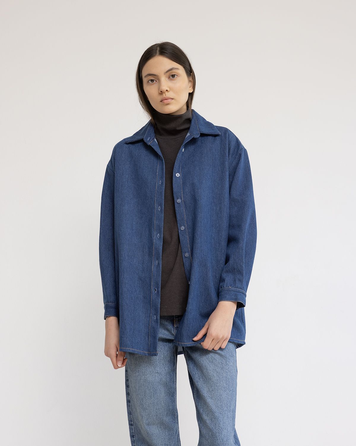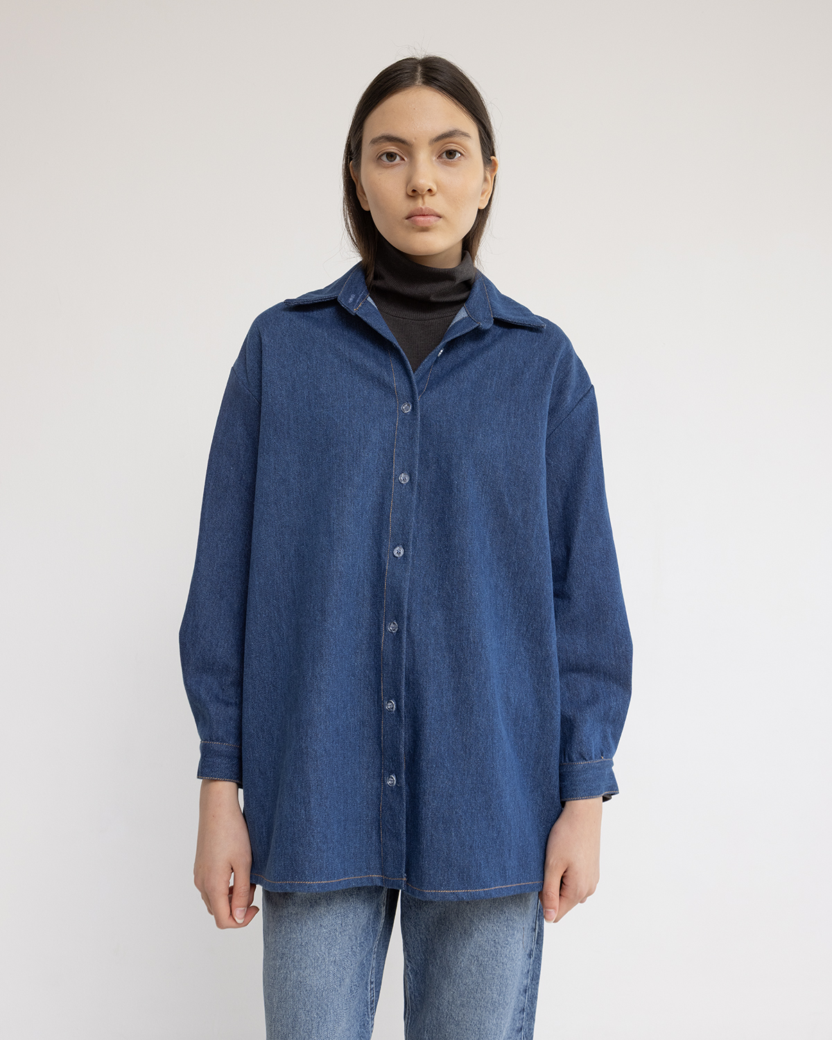 חולצת ג׳ינס בגזרה משוחררת,