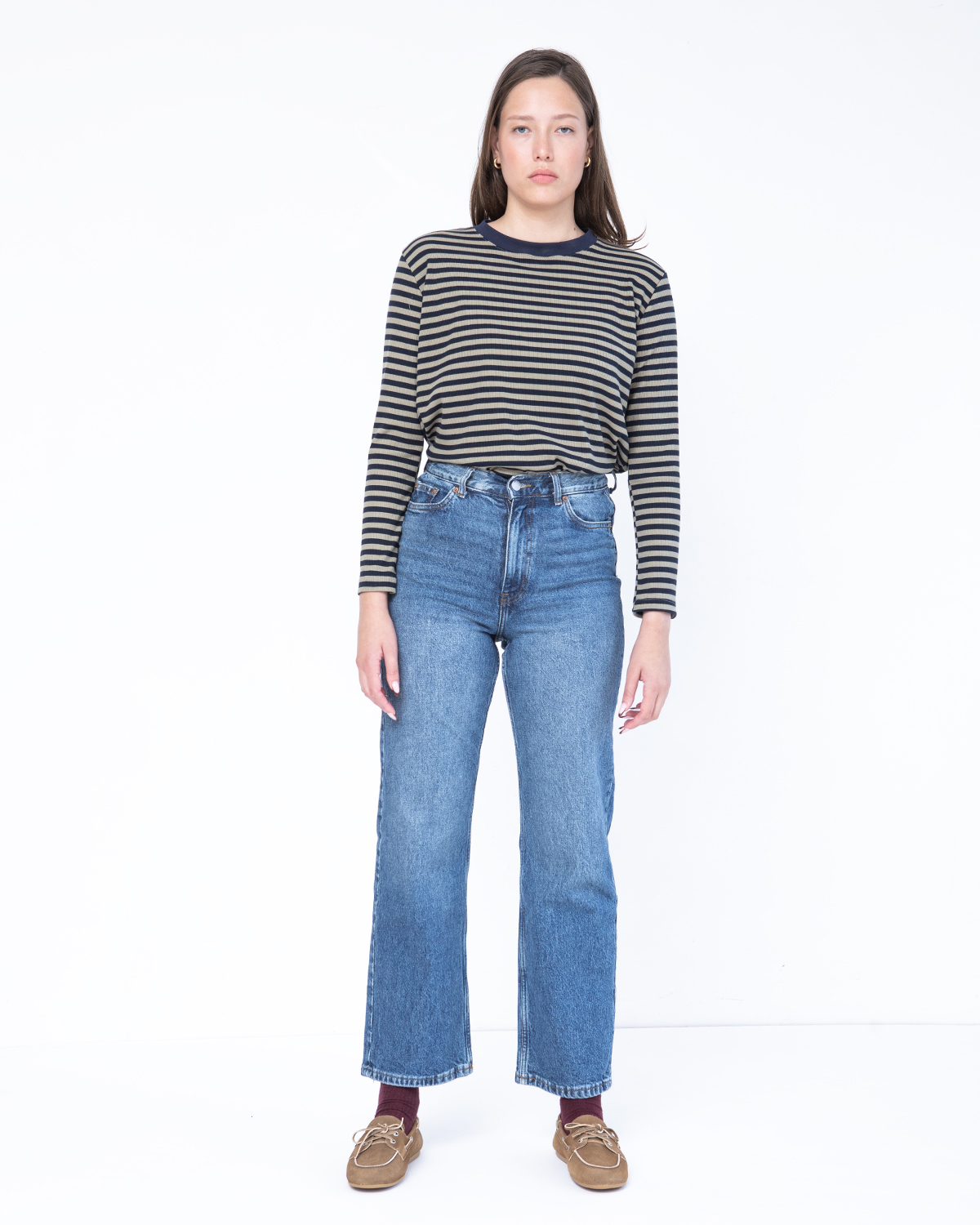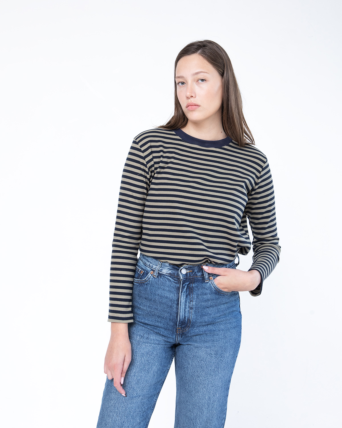 מפתח עגול סגור, בד כותנה נעים ודוגמת פסים.