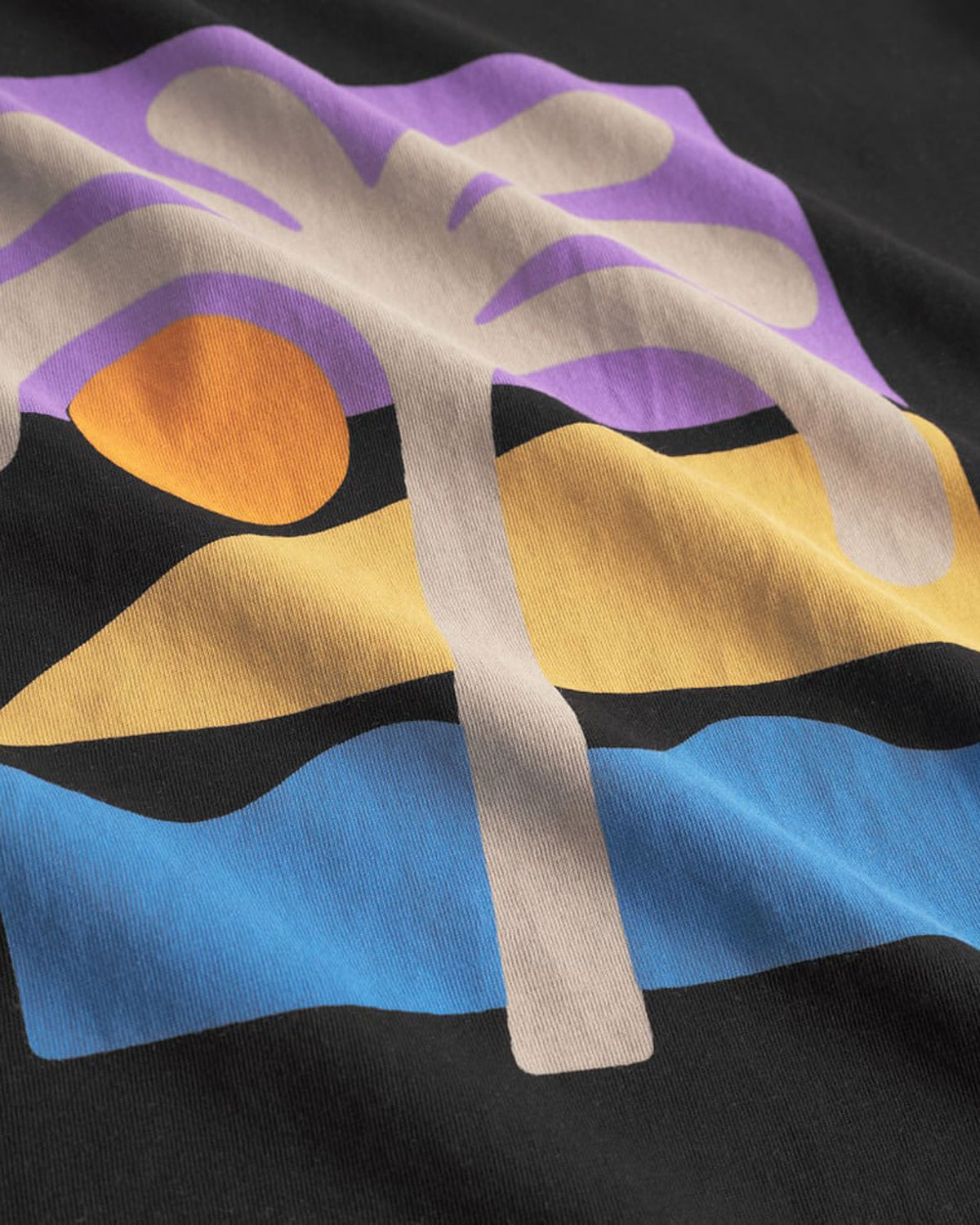 עם מפתח עגול, שרוול קצר, פרינט בחזית.