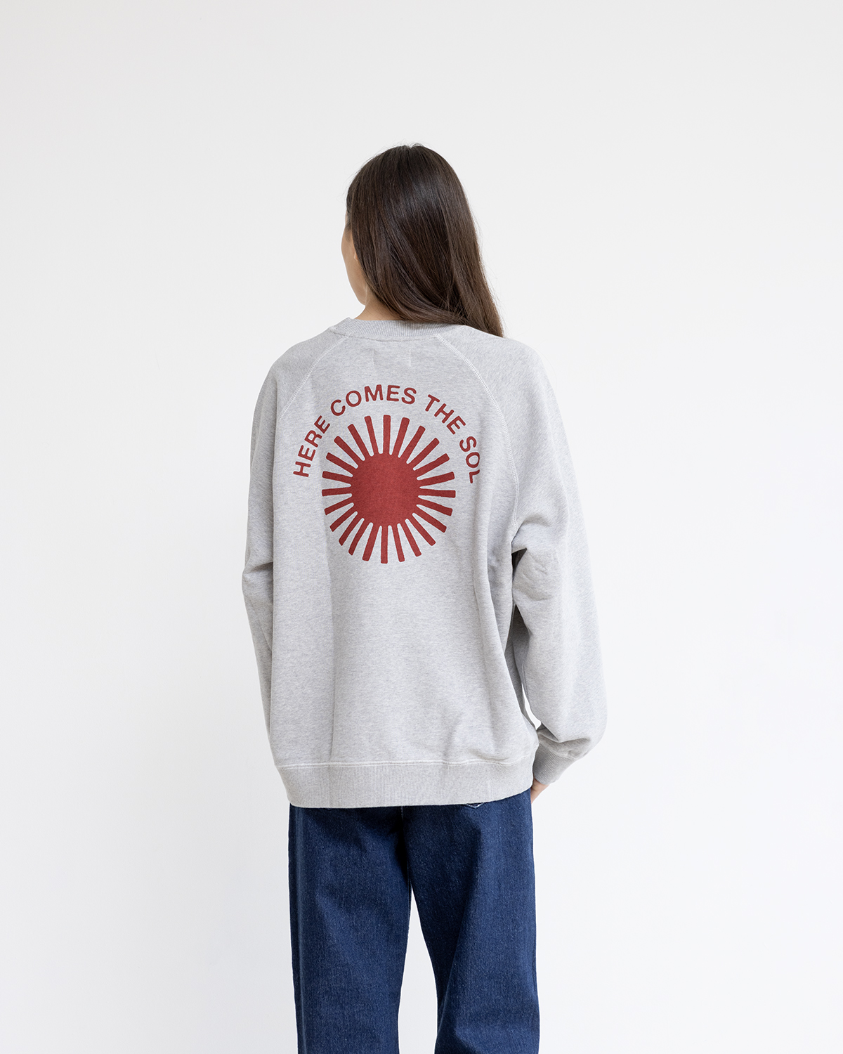 מפתח עגול, מנג׳ט במפתח, שרוולים ובסיומת, פרינט שמש בגב.